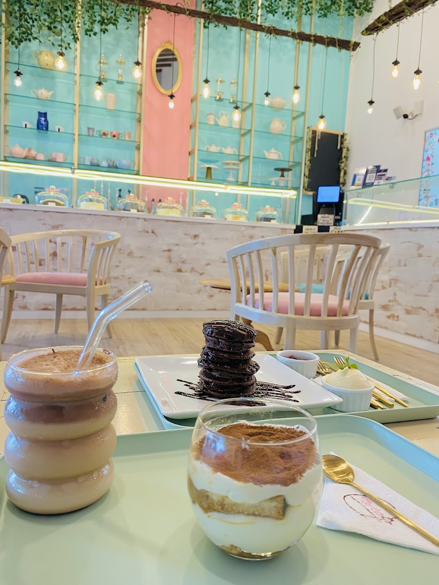 The menu highlights include intriguing options like Mini Pan Cakes and distinctive drinks such as the Hazy Mocha Mingle and Brown Butter Harmony Caramelized Tiramisu Frappe. These selections hint at a café experience focused on thoughtful creativity rather than conventional coffee shop staples. Visitors often find themselves pairing their beverages with beautifully presented desserts, which stand out not only for taste but also for their visual appeal.